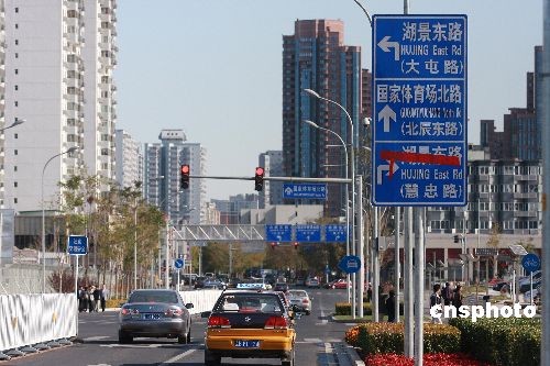 11月3日,北京奧林匹克公園東西向的4條主要道路已全部向社會車輛開放,無需通行證,但出于保護游客安全考慮,南北向主要道路目前仍封閉。中新社發(fā) 鄭雄增 攝