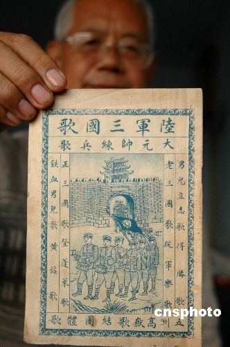 2008年11月4日,一本塵封80年民國年間出版的張作霖《大元帥練兵歌》在山東濱州無棣面世。該書1928年由天津河東特制、聚文山房發(fā)行!洞笤獛浘毐琛烦氖敲駠埠,夸的是本軍統(tǒng)帥,說的是當兵意義,真實記錄了奉軍出操、練兵、行軍、打仗的場景。令人驚奇的是,被毛澤東反復推薦的紅軍歌曲《三大紀律八項注意》的曲調,竟是張作霖的《大元帥練兵歌》。中新社發(fā) 梁寶海 攝