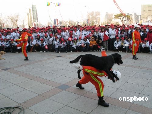 11月9日上午,以“關注消防,珍愛生命,共享平安”為主題的遼寧省沈陽市“消防志愿者行動”啟動儀式在沈陽師范大學文體館隆重舉行。省、市兩級公安消防、共青團、教育、民政、文化、衛(wèi)生、婦聯(lián)、廣電、新聞出版、安全生產(chǎn)、工會、紅十字會等13個行業(yè)部門及4000多名消防志愿者參加啟動儀式。啟動儀式結(jié)束后,4000名消防志愿者現(xiàn)場進行了滅火和疏散逃生演練,并展開了志愿者消防宣傳互動、消防知識問答、滅火演練、搜救犬表演等異彩紛呈的宣傳活動。 中新社發(fā) 趙敬東 攝
