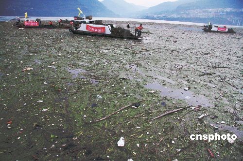 圖:三峽庫(kù)區(qū)沿線展開(kāi)應(yīng)急清理打撈行動(dòng)