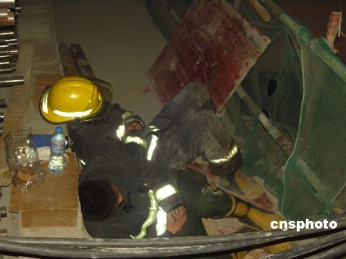 2008年11月15日下午,浙江省杭州市蕭山區(qū)風(fēng)情大道地鐵1號線施工現(xiàn)場發(fā)生重大塌陷事故,救援人員徹夜奮戰(zhàn)抽取積水。中新社發(fā) 王磊 姜越潮 攝