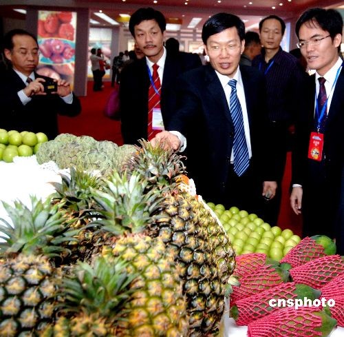 11月19日,第十屆海峽兩岸(福建漳州)花卉博覽會(huì)、二00八年臺(tái)灣農(nóng)產(chǎn)品博覽會(huì)進(jìn)入第二天。在臺(tái)灣農(nóng)產(chǎn)品博覽會(huì)展區(qū)通過(guò)兩岸“三通”路徑登陸福建漳州的十多種臺(tái)灣原產(chǎn)地水果,吸引了眾多來(lái)賓和民眾的目光。 中新社發(fā) 劉可耕 攝