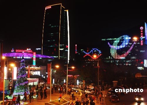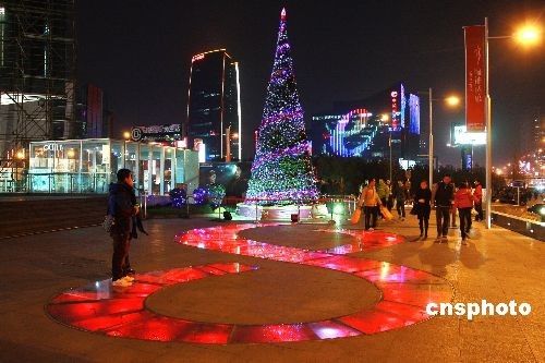 11月23日晚,北京市民在中關(guān)村廣場(chǎng)感受濃厚的節(jié)日氣氛。圣誕節(jié)前夕,巨型圣誕樹(shù)打造“流光溢彩”中關(guān)e世界,迎接“購(gòu)物季”的到來(lái),一場(chǎng)圣誕商戰(zhàn)正在悄然打響。中新社發(fā) 鄭雄增 攝