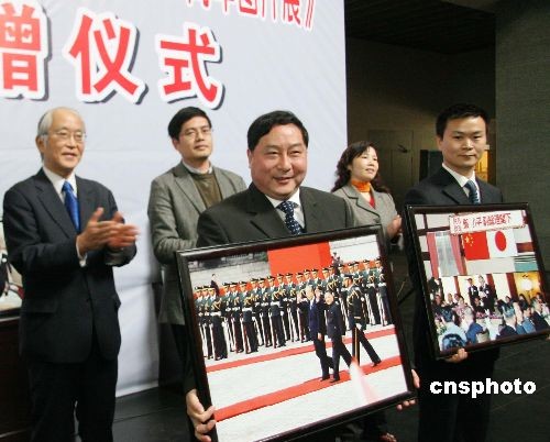 11月25日下午,日本駐重慶總領事館總領事富田昌宏將《中日友好和平條約締結(jié)暨鄧小平訪問日本30周年圖片展》展品捐贈給廣安鄧小平紀念園陳列館。中新社發(fā) 杜修戰(zhàn) 攝