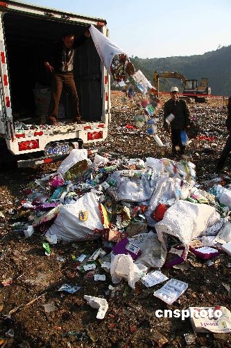 11月26日,浙江州一民企藥店在溫嶺生活垃圾處理場公開銷毀價值5萬多元的過期藥品,這是該公司今年第二次銷毀過期藥品。自三鹿奶粉中發(fā)現(xiàn)三聚氰胺事件后,食品安全越來越受到人們的關(guān)注和重視,作為臺州境內(nèi)較有影響的藥品銷售企業(yè),該藥店自覺嚴格按照《藥品管理法》的要求,分類整理庫存藥品,最近共整理出感冒藥、抗菌藥等過期藥品500多公斤,總價值5萬多元。中新社發(fā) 劉振清 攝
