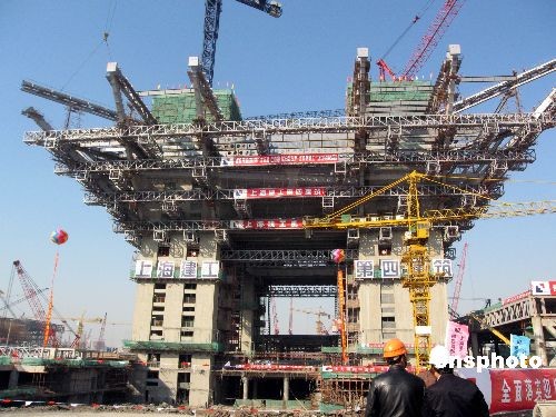 11月28日,備受外界關(guān)注的中國(guó)2010年上海世博會(huì)中國(guó)館實(shí)現(xiàn)混凝土結(jié)構(gòu)封頂,初露雄姿。以“東方之冠”為構(gòu)思主題的這一巨型展館,自2007年12月18日開(kāi)工建設(shè),總預(yù)算達(dá)15億人民幣。據(jù)了解,上海世博會(huì)中國(guó)館有望于2009年10月前完成整體建設(shè)。 中新社發(fā) 許曉青 攝