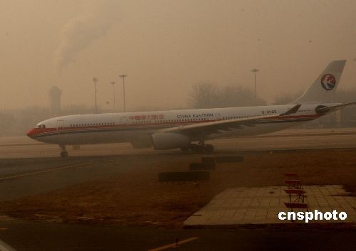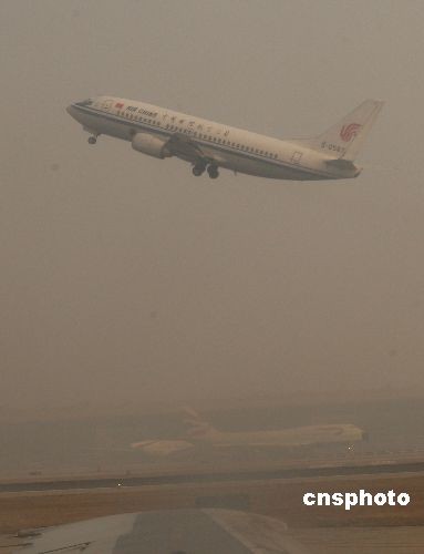 12月11日上午,北京首都國(guó)際機(jī)場(chǎng)周邊地區(qū)少量降雪,形成霧霾天氣,造成部分進(jìn)出港航班延誤。中新社發(fā) 趙振清 攝