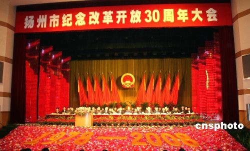 圖:江蘇揚(yáng)州召開(kāi)紀(jì)念改革開(kāi)放30周年大會(huì)