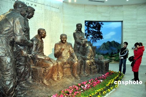 12月18日,一尊長5.8米,寬1.98米,高3米“鄧小平和工人們在一起”大型群雕銅像亮相江西省新建縣“小平小道” 陳列館,吸引著眾多參觀者參觀瞻仰。當日,“小平小道”陳列館正式開館對外開放。中新社發(fā) 段長征 攝