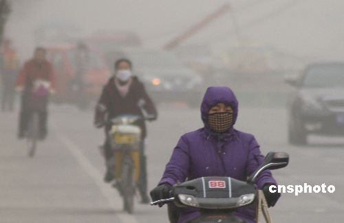 12月21日,哈密街頭行人在浮塵中行進(jìn)。當(dāng)日,新疆哈密遭遇罕見的浮塵天氣,浮塵造成空氣質(zhì)量和能見度下降,給人們出行帶來(lái)不便。中新社發(fā) 蔡增樂 攝