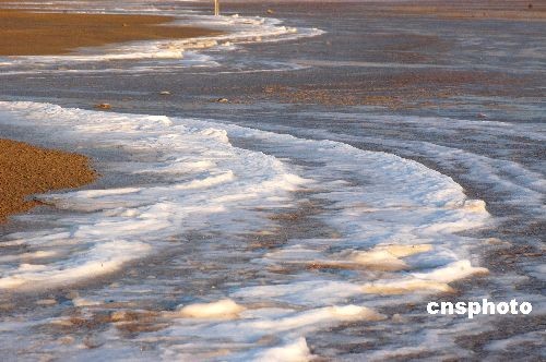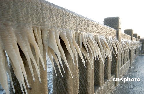 12月22日,連云港受強(qiáng)冷空氣影響,最低氣溫零下8攝氏度。在西北大風(fēng)作用下海上生成了滔天巨浪,濺在海岸邊護(hù)欄上的海水凍結(jié)成了晶瑩剔透的冰凌,沙灘上也是白茫茫的一片雪地,給寒冬里的連云港海濱增添了一道生態(tài)風(fēng)景線,不少游人觀賞到難得一見的景觀。中新社發(fā) 王春 攝