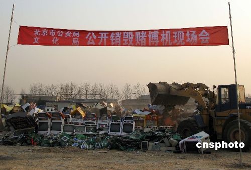 十二月二十六日,北京警方對收繳的非法賭博機(jī)進(jìn)行銷毀。中新社發(fā) 任海霞 攝
