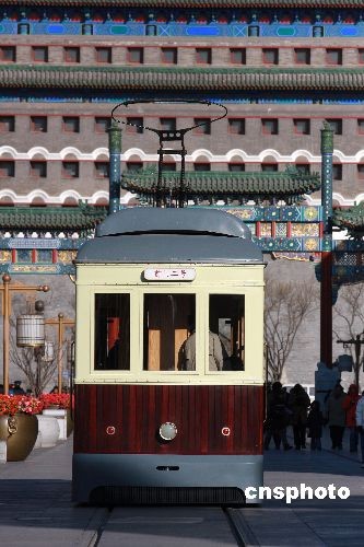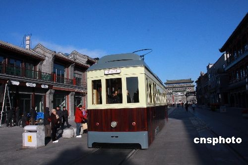 12月29日,北京前門大街“鐺鐺車”載客試運(yùn)行,吸引不少游客的目光!拌K鐺車”已經(jīng)清洗一新,2009年元旦將正式開(kāi)通迎客,那“鐺鐺”的聲音時(shí)隔50年后將再次回到煥然一新的前門大街,成為新北京的一大亮點(diǎn)。中新社發(fā) 鄭雄增 攝