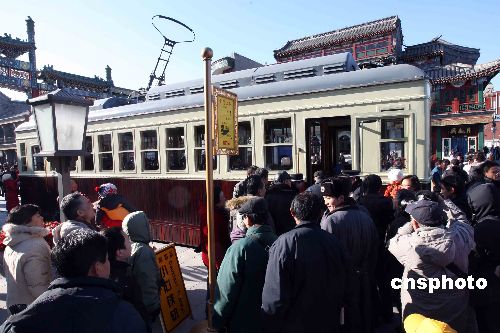 元月一日,京城市民盼望已久的前門鐺鐺車首日開通,乘坐的市民絡(luò)繹不絕,紛紛體驗其中的快樂。中新社發(fā) 任海霞 攝