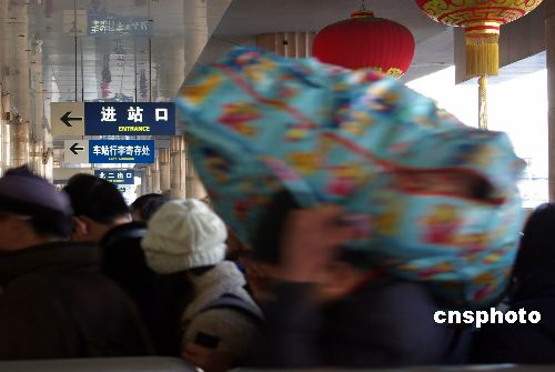 2009年1月5日,受金融危機(jī)影響,在北京的部分打工人員紛紛提前返鄉(xiāng),形成一股早到的“返鄉(xiāng)潮”,客流高峰提前到來。中新社發(fā) 九州 攝