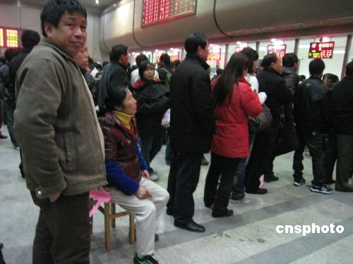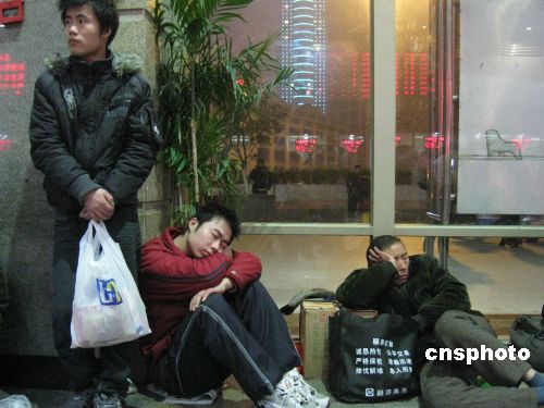 運(yùn)輸部門(mén)近日表示,2009年春運(yùn)將從一月十一日開(kāi)始至二月十九日結(jié)束。據(jù)預(yù)測(cè),在40天里浙江省將有近1.946億的旅客通過(guò)各種交通方式出行。受金融危機(jī)的影響,目前已經(jīng)無(wú)工可做的打工者選擇了提前返鄉(xiāng),以致浙江發(fā)往湘、鄂、黔、贛等地的車(chē)次出現(xiàn)“一票難求”的現(xiàn)象。中新社發(fā) 孫寧亞 攝