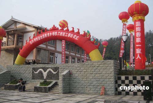 一月八日,四川地震災(zāi)區(qū)首個異地重建鄉(xiāng)鎮(zhèn)——北川羌族自治縣香泉鄉(xiāng)舉行竣工儀式。“五·一二”特大地震中,北川陳家壩鄉(xiāng)、漩坪鄉(xiāng)和香泉鄉(xiāng)原場鎮(zhèn)遭受嚴(yán)重破壞,后又遭遇“九·二四”洪澇泥石流災(zāi)害。經(jīng)四川省政府批準(zhǔn),三個鄉(xiāng)進行原地異址重建。中新社發(fā) 肖青 攝