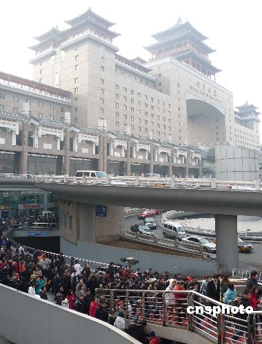 2009年1月17日,北京西站人頭攢動(dòng)、旅客如織。當(dāng)日,北京西站回家過年的“農(nóng)民工返鄉(xiāng)流、學(xué)生流、探親流”依舊強(qiáng)勁,并呈持續(xù)增長(zhǎng)的趨勢(shì)。中新社發(fā) 玉龍 攝