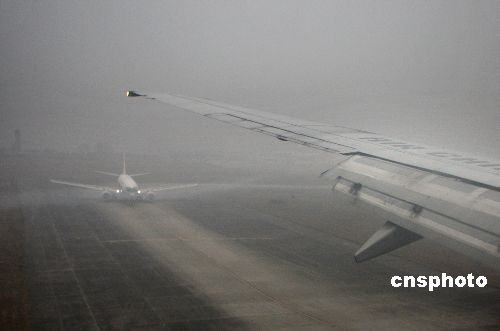 1月18日12時(shí)30分,一架滿載回家過(guò)年乘客的中國(guó)國(guó)際航空公司從北京飛往成都的波音738客機(jī),在成都機(jī)場(chǎng)上空盤(pán)旋五十分鐘后方降落在依舊被濃霧籠罩的成都機(jī)場(chǎng)跑道。當(dāng)天,四川省的川西平原遭遇今冬極為罕見(jiàn)的超級(jí)濃霧天氣,成都機(jī)場(chǎng)的航班大面積延誤,午后方部分開(kāi)放。中新社發(fā) 任晨鳴 攝