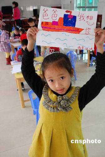 新春佳節(jié)來(lái)臨之際,海軍南海艦隊(duì)政治部幼兒園5歲半的郝冰冰和小朋友們一起畫了軍艦馳騁在深藍(lán)大洋的圖畫,送給遠(yuǎn)在亞丁灣執(zhí)行護(hù)航任務(wù)的父母。中新社發(fā) 胡嘉 攝