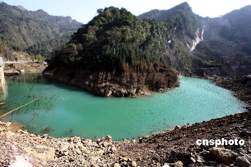 1月24日,多日大霧陰雨的四川5·12大地震地區(qū)出現(xiàn)了難得晴朗天氣,在大地震中令人談虎色變、危及下游安全的茶坪河堰塞湖遺址呈現(xiàn)了碧綠的湖水與青山交相輝映的美景。據(jù)地質(zhì)專家介紹,四川著名的旅游勝地九寨溝就是幾千年以前地震后形成的堰塞湖早就的。中新社發(fā) 任晨鳴 攝