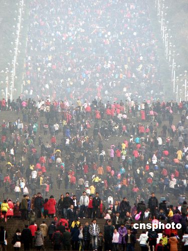 1月26日,重慶市云陽(yáng)新縣城3萬(wàn)多市民結(jié)伴登臨磐石城,訪古跡、看新城、賞平湖,以戶外健身活動(dòng)的方式迎接新年。春節(jié)期間,三峽庫(kù)區(qū)的移民大縣云陽(yáng)天氣晴朗,市民們紛紛走出戶外,廣場(chǎng)、公園、張飛廟、磐石城等風(fēng)景區(qū)處處洋溢節(jié)日氣氛,大量游客和市民群眾在休閑中以各種不同方式歡快過(guò)節(jié)。中新社發(fā) 饒國(guó)君 攝