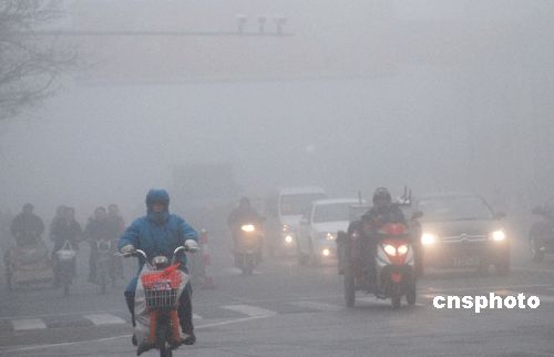 2009年2月1日(正月初七),蘇北贛榆縣境內(nèi)遭遇新春首場大霧,能見度較低,當(dāng)?shù)亟煌ü膊块T迅速啟動應(yīng)急預(yù)案,組織干警疏通行人和車輛,確保行人車輛安全無事故。中新社發(fā) 朱代桂 攝