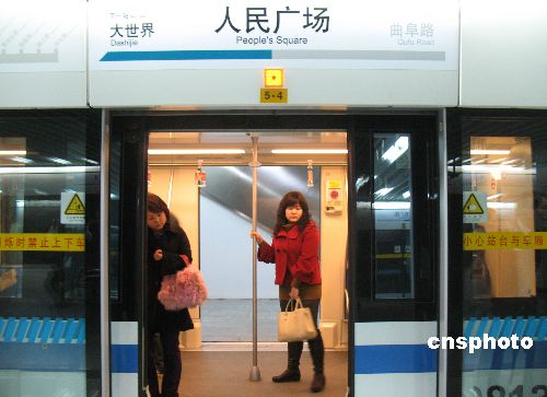 2009年2月3日,上海軌道交通人民廣場(chǎng)站,8號(hào)線通過列車同時(shí)開啟的雙側(cè)門實(shí)現(xiàn)乘客快速換乘。近日,上海軌道交通在8號(hào)線人民廣場(chǎng)往耀華路方向啟用新站臺(tái),首次實(shí)施單列車雙側(cè)開門的客運(yùn)組織方式,列車抵達(dá)人民廣場(chǎng)站后,同時(shí)開啟車廂的兩側(cè)車門,車內(nèi)乘客可自行選擇就近一側(cè)站臺(tái)下車。這一新的客運(yùn)組織方式使客流疏散速度明顯加快。據(jù)上海軌道交通建設(shè)指揮部透露,今年年內(nèi),軌道交通1號(hào)線人民廣場(chǎng)站也有望建成類似站臺(tái),加快乘客流通速度。中新社發(fā) 張波wj 攝