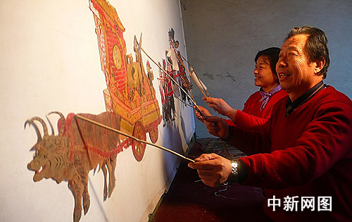 中新網(wǎng)2月6日電(馮文芳)2月5日,山西省侯馬市西侯馬村,皮影戲傳承人李世偉、皮影雕刻大師趙翠蓮夫婦耍起牛車和影人,表演皮影戲《鬧社火》,慶祝傳統(tǒng)元宵佳節(jié)。夫婦倆邊操作邊演唱,字正腔圓的唱段、妙趣橫生的臺(tái)詞、活靈活現(xiàn)的表演,受到鄉(xiāng)親們的歡迎。人們紛紛落座觀看,盡情享受這一獨(dú)具魅力的民間文化大餐。