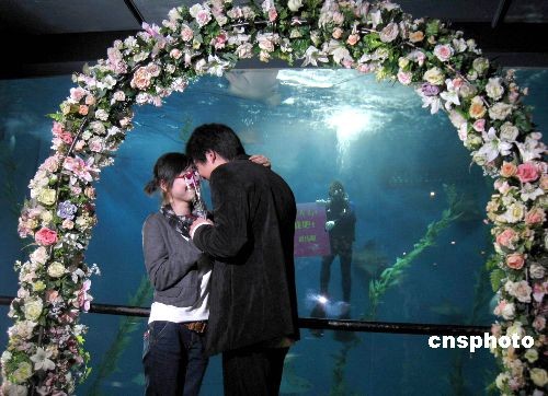 圖:申城情人“海洋世界”求婚演繹浪漫