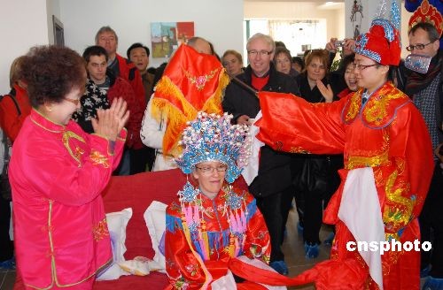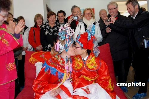 3月1日,江蘇鎮(zhèn)江市永安新城小區(qū)的喬樑迎娶比利時(shí)姑娘多娜。據(jù)了解,喬樑是在留學(xué)比利時(shí)期間與校友多娜相識(shí)、相戀、相愛(ài)走到了一起,兩人商議在中國(guó)舉行婚禮的想法得到雙方父母支持,多娜的20多位親友也從比利時(shí)隨行來(lái)中國(guó)參加了婚禮活動(dòng)。中新社發(fā) 陳崗 攝