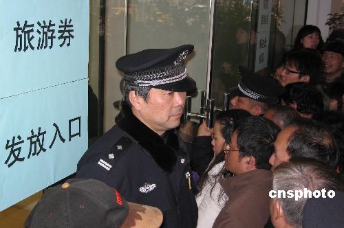 3月1日,杭州旅游部門開始面向上海市民發(fā)放13.5萬份、總面值達(dá)900萬元人民幣的“杭州旅游消費(fèi)券”。在發(fā)放點(diǎn)之一的杭州銀行上海分行營(yíng)業(yè)部,消費(fèi)券發(fā)放遭到上海市民哄搶,場(chǎng)面一度混亂。為促進(jìn)杭州旅游業(yè)推廣,由杭州市旅委發(fā)行的“消費(fèi)券”可在180家指定景點(diǎn)和商家使用,游客每消費(fèi)40元可抵扣10元,面向廣大市民均可申請(qǐng)領(lǐng)取。此次面向全國(guó)統(tǒng)一發(fā)放的杭州旅游消費(fèi)券為240萬套,總額達(dá)到1.5億元。中新社發(fā) 李佳佳 攝
