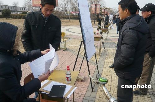 3月2日,北京市房山區(qū)舉行2009農(nóng)村鄉(xiāng)鎮(zhèn)企業(yè)人才招聘會(huì),是次招聘會(huì)以京郊鄉(xiāng)鎮(zhèn)企業(yè)為主面向農(nóng)村招聘相應(yīng)人才,參加招聘項(xiàng)目有農(nóng)業(yè)生態(tài)科技管理、技師技工、商場(chǎng)銷(xiāo)售、家政服務(wù)、現(xiàn)代園林管理、工貿(mào)公司以及個(gè)體經(jīng)營(yíng)企業(yè),對(duì)個(gè)人求職者現(xiàn)場(chǎng)面試,同時(shí)招聘會(huì)還設(shè)立了勞務(wù)招工咨詢處為應(yīng)聘者解答招聘事項(xiàng)。中新社發(fā) 錢(qián)興強(qiáng) 攝
