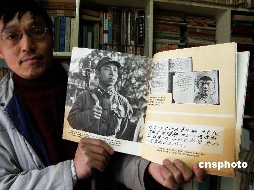 2009年3月4日,湖北宜昌市鐵路壩古玩市場(chǎng)的朱保國(guó)先生展示自己珍藏的《偉大的共產(chǎn)主義戰(zhàn)士--雷鋒》畫(huà)冊(cè)。該畫(huà)冊(cè)是解放軍畫(huà)報(bào)社編輯、上海人民出版社1977年12月首次出版的。雷鋒,1940年12月18日生,1962年8月因公殉職。雷鋒是一位偉大的共產(chǎn)主義戰(zhàn)士、全心全意為人民服務(wù)的楷模。每年3月5日是全民學(xué)雷鋒的日子。中新社發(fā) 劉君鳳 攝