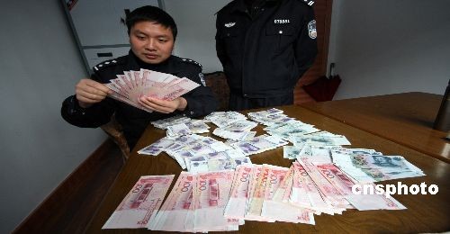 近日,在全國公安機(jī)關(guān)打擊假幣“09”行動中,浙江黃巖警方成功抓獲一名非法持有假幣的犯罪嫌疑人,繳獲了編號為“HD、HB”的假鈔一萬七千多元。目前,犯罪嫌疑人劉某已經(jīng)被刑事拘留,案件仍在進(jìn)一步審查中。中新社發(fā) 袁爽 攝