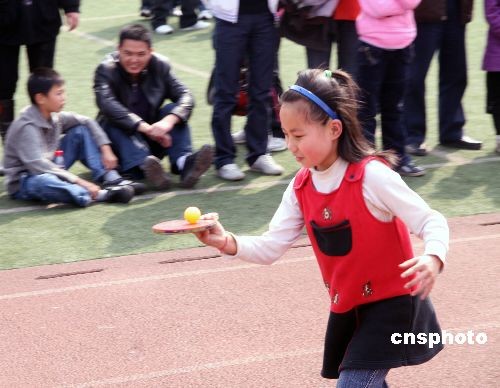 3月7日,主題為“關(guān)愛(ài)農(nóng)民工·共建和諧家庭”的返鄉(xiāng)農(nóng)民工家庭趣味運(yùn)動(dòng)會(huì)在重慶大學(xué)城第二小學(xué)舉行,當(dāng)?shù)?7戶農(nóng)民工家庭參加了“家庭跳繩”、“搬運(yùn)物品”、“齊心協(xié)力接力賽”等項(xiàng)目的比賽。圖為一位農(nóng)民工子女正在參加“搬運(yùn)物品”比賽。中新社發(fā) 銀雪 攝