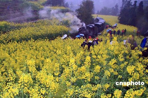 3月8日,來自各地的婦女游客,紛紛擁入四川樂山犍為感受嘉陽小火車的獨特魅力。嘉陽小火車的軌距僅76.2cm,被稱為“寸軌”,只有普通列車軌距的一半左右。它是世界上目前唯一尚存的窄軌客運蒸汽小火車,被稱為“原生態(tài)的工業(yè)革命活景觀”、“活著的18世紀(jì)工業(yè)革命博物館”。 中新社發(fā) 黃家明 攝