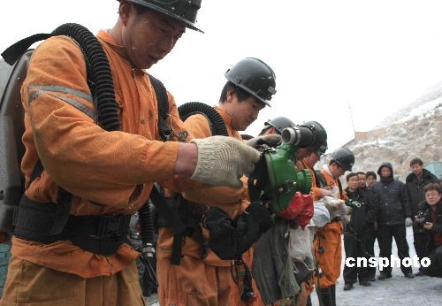 3月12日,位于甘肅省武威市天?h境內(nèi)的一座煤礦發(fā)生事故,被困井下的6名當(dāng)班工作人員全部遇難。該煤礦屬于天祝隆德煤業(yè)有限責(zé)任公司所有,證照齊全,1996年建成投產(chǎn),年設(shè)計(jì)生產(chǎn)能力6萬噸。今年2月13日,該礦提出申請井下維修報(bào)告,16日獲批準(zhǔn)進(jìn)行維修,至事故發(fā)生時仍在維修整改之中,并未投入生產(chǎn)。圖為救援人員作下井前的準(zhǔn)備工作。中新社發(fā) 殷春永 攝