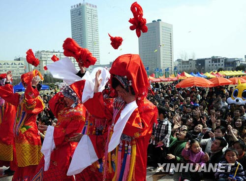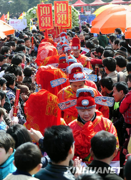 3月15日,合肥杏花公園舉辦古裝集體婚禮。8對(duì)新人身著古典婚俗禮服,在人們的祝福中喜結(jié)連理。