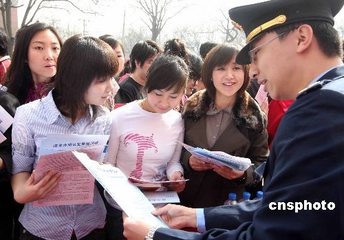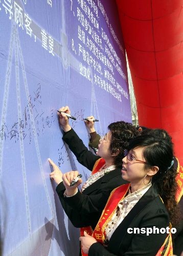 三月十七日,北京工商舉行紀(jì)念《中華人民共和國(guó)合同法》十周年活動(dòng)。京城許多商家在執(zhí)行《合同法》誠(chéng)信、履約、規(guī)范簽字版上簽字。中新社發(fā) 任海霞 攝