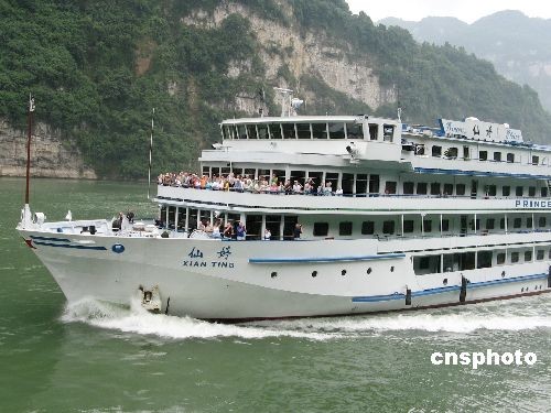 2009年3月20日,據(jù)湖北宜昌海事局透露,長江上由國外(德國)建造的船型最長、載客量最大、中國首批掛牌的五星級皇家系列游輪——仙娜、仙婷、仙妮姊妹船巳成功落戶宜昌港。自此,三峽門戶宜昌港豪華涉外游船達(dá)33艘。中新社發(fā) 韓玉洪 攝