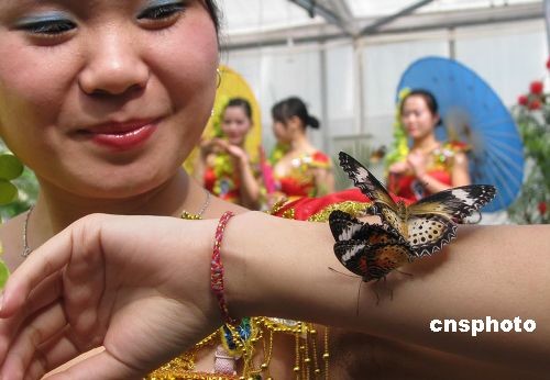 4月1日,位于北京植物園內(nèi)的熱帶蝴蝶生態(tài)園正式開(kāi)園,數(shù)千只色彩斑斕的蝴蝶和數(shù)十種千奇百怪的蟲(chóng)子將正式與游客見(jiàn)面。熱帶生態(tài)蝴蝶園是中國(guó)內(nèi)地首次從馬來(lái)西亞檳城蝴蝶園進(jìn)口的集昆蟲(chóng)蝴蝶標(biāo)本、活體昆蟲(chóng)展示和活蝴蝶放飛為一體的具有知識(shí)性、趣味性、科普性、教育性的昆蟲(chóng)蝴蝶科普生態(tài)園,也是國(guó)內(nèi)第一家進(jìn)口的活體蝴蝶和昆蟲(chóng)品種最全、規(guī)模最大、蝴蝶昆蟲(chóng)標(biāo)本最多科普展。熱帶蝴蝶生態(tài)園共分為三個(gè)展區(qū):蝴蝶館、昆蟲(chóng)館、科普標(biāo)本館。圖為蝴蝶生態(tài)園吸引游客。中新社發(fā) 錢(qián)興強(qiáng) 攝
