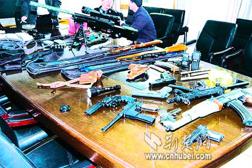 4月3日,青山警方在查處一起涉毒案件時獲得線索,在紅鋼城三街坊陳某家中,搜出手槍、機(jī)關(guān)槍、沖鋒槍、狙擊步槍等仿真度極高的槍支13支,還有一批管制刀具。警方認(rèn)定,這些仿真槍具有殺傷力。