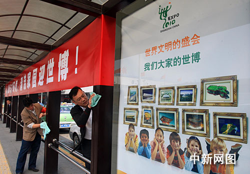 在虹橋機場候機樓前廣場,志愿者們擼袖揮汗,認真清掃地面、擦拭圍欄,以擦亮城市窗口;在虹橋機場925公交車站、第一停車場等區(qū)域,60多名南京路上好八連戰(zhàn)士以及武警部隊官兵不認真進行衛(wèi)生死角整治行動;而在虹橋機場第二停車場,身著綠色志愿者馬甲的義務(wù)監(jiān)督員向過往旅客和路人進行環(huán)境衛(wèi)生宣傳教育,勸阻和制止亂扔垃圾雜物的不文明行為。
