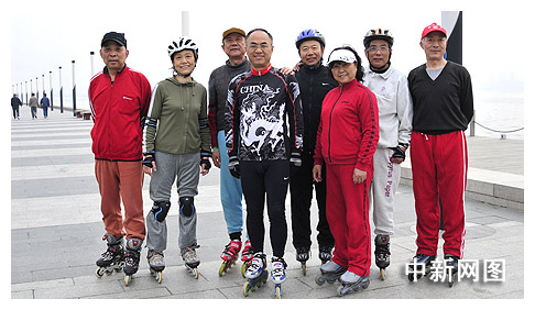 中新網(wǎng)蘇州4月16日電(周昕) 清晨的蘇州工業(yè)園區(qū)金雞湖畔,一群老人特別的顯眼,和一般老人打拳、舞扇、散步的鍛煉方式不同,他們雙手背在身后,腳下踩著“風(fēng)火輪”,八個(gè)人排成一列,向前滑行,一個(gè)滑步便輕松地把其他人遠(yuǎn)遠(yuǎn)地甩在了身后,顯得異常瀟灑并且充滿活力。