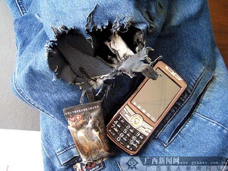 手機(jī)新電池炸傷消費者屁股 牛仔褲被炸出大洞