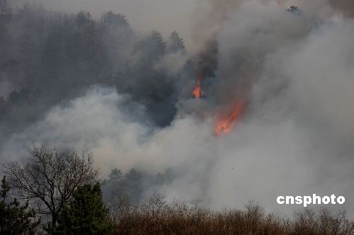 2009年4月17日下午,山西省盂縣上社鎮(zhèn)磨盤村磨盤山發(fā)生森林火災(zāi),因風(fēng)力過大,大火肆虐,整個森林煙霧彌漫。森林火災(zāi)發(fā)生后,盂縣人民政府和當(dāng)?shù)赜嘘P(guān)部門調(diào)集力量迅速到現(xiàn)場。經(jīng)過緊急撲救,截止下午5時30分火情已基本得到控制,暫無人員傷亡。目前,起火原因正在調(diào)查中。中新社發(fā) 程瑜