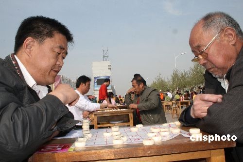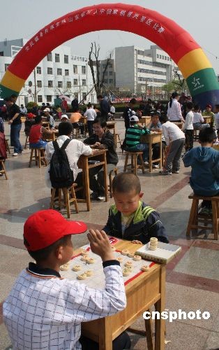 4月18日,在山東博興縣文化廣場,136名當(dāng)?shù)刂袊笃鍚酆谜邊⒓恿松綎|省“全民健身,共享全運(yùn)”萬人中國象棋博興賽區(qū)比賽。比賽分為成人、少年兒童兩個(gè)組別。為了弘揚(yáng)“和諧中國,全民全運(yùn)”,營造喜迎“十一運(yùn)”的良好社會(huì)氛圍,山東省在全省范圍內(nèi)組織舉辦了“全民健身、共享全運(yùn)”萬人中國象棋比賽。 中新社發(fā) 陳 彬 攝