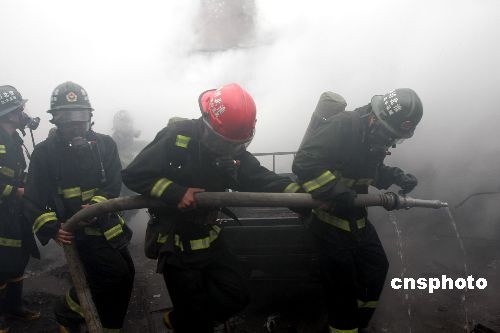 4月20日5時34分,安徽省濉溪縣虎山路東側(cè)口子批發(fā)市場附近一漁畜具倉庫發(fā)生火災(zāi);幢笔邢乐ш犗群笳{(diào)動3個中隊9輛消防水罐車、2輛消防指揮車, 80名官兵前往火場滅火。明火于早晨8時被撲滅。此次火災(zāi)過火面積150平方米左右,無人員傷亡。在撲救過程中,共搶救危險品8桶桐油、6罐氧氣瓶,疏散被困人員近200人。目前火災(zāi)損失和起火原因正在進一步調(diào)查中。中新社發(fā) 萬善朝 攝