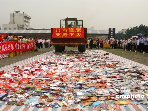 4月22日,全國(guó)侵權(quán)盜版制品及各類非法出版物集中銷毀活動(dòng)在廣西柳州拉開帷幕。在廣西柳州市設(shè)立的分會(huì)場(chǎng),共銷毀侵權(quán)盜版、淫穢色情等非法出版物及地下“六合彩”資料79萬件,折合人民幣約356萬元,是柳州市開展“掃黃打非”斗爭(zhēng)二十多年以來規(guī)模最大的一次集中銷毀。中新社發(fā) 曹偉軍 攝